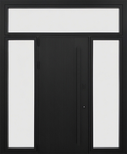 Входная остекленная группа с терморазрывом, бугельной ручкой и черным полимерным окрашиванием представляет собой удачное сочетание инженерной точности и дизайнерской проработки. За счёт комплексного подхода к проектированию дверь является оптимальным решением для современных интерьеров.